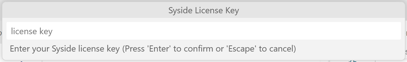 When first trying to use Syside Modeler you will be prompted to provide the license key. To trigger the prompt manually, follow these steps: